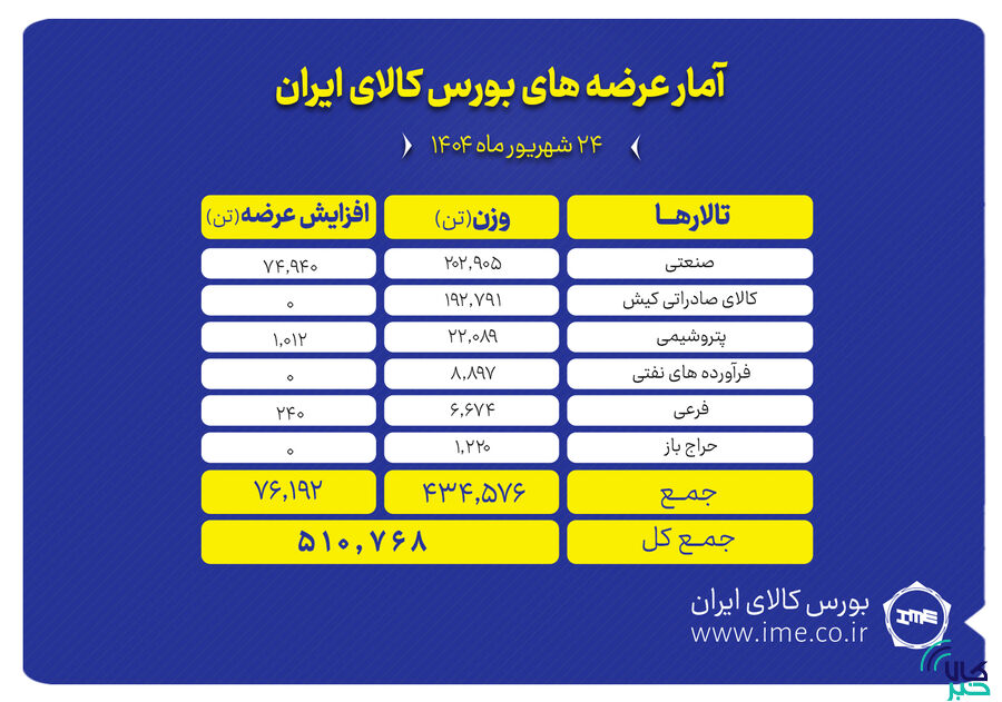 ۱۹۲ هزار و ۷۹۱ تن محصول شامل ۱۰۶ هزار تن کلینکر، ۶۵ هزار تن سیمان، ۲۱ هزار و ۴۹۱ تن قیر و ۳۰۰ تن عایق رطوبتی نیز در تالار صادراتی کیش عرضه می شود.
