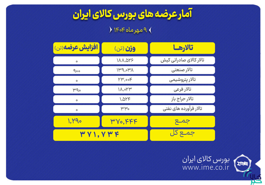 تالار صنعتی میزبان عرضه ۱۳۹ هزار و ۹۳۸ تن محصول شامل ۱۳۸ هزار و ۶۴۳ تن فولاد، یک هزار تن آلومینیوم و ۲۹۵ تن مس است.