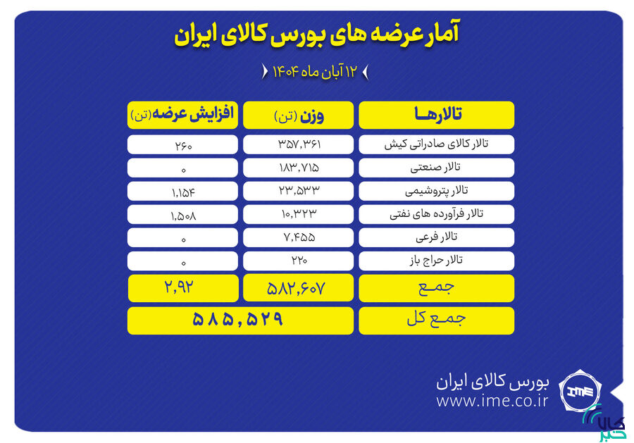 به گزارش کالاخبر، امروز در تالار صادراتی کیش ۳۵۷ هزار و ۶۲۱ تن محصول شامل ۲۲۰ هزار و ۷۳۲ تن سیمان، ۹۵ هزار تن کلینکر، ۴۱ هزار و ۳۶۹ تن قیر و ۵۲۰ تن روغن عرضه می شود.