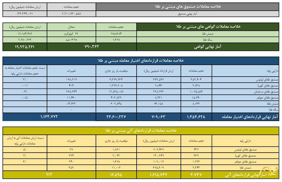 ارزش معاملات صندوق های طلا ۱۹.۴ همت شد