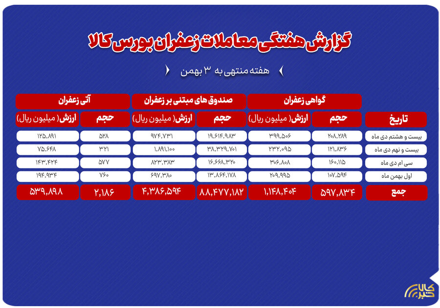 جزئیات معاملات هفتگی زعفران