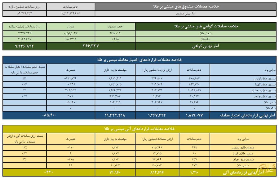 ارزش معاملات صندوق های طلا ۹.۳ همت شد
