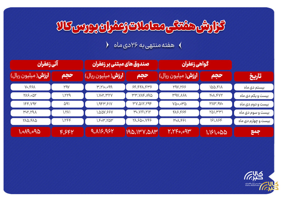خلاصه معاملات زعفران در بورس کالا طی روز یکشنبه
