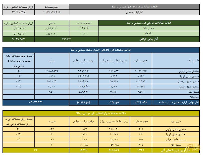 ارزش معاملات صندوق های طلا ۹.۲ همت شد