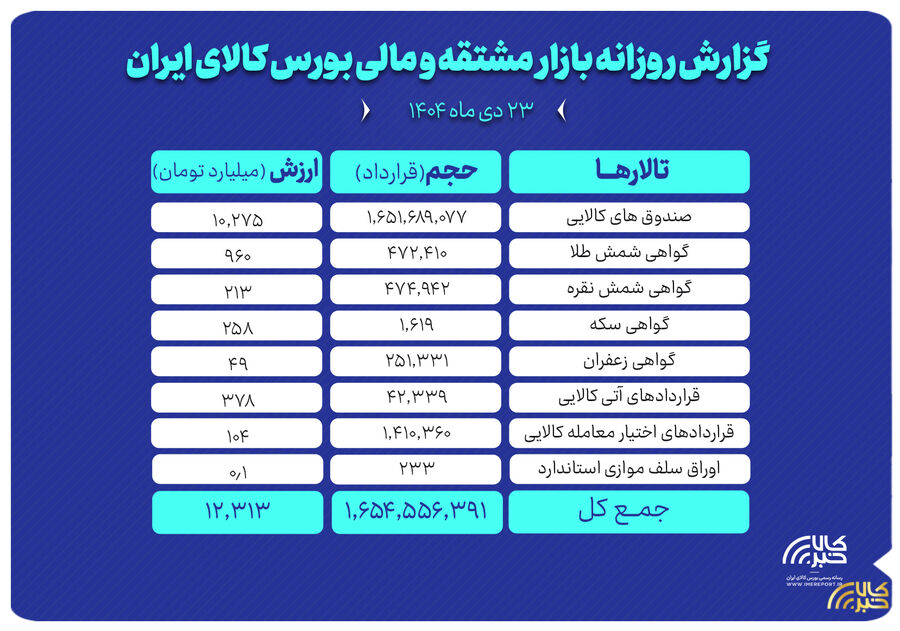 ارزش معاملات بازار مشتقه و مالی بورس کالا ۱۲ همت شد