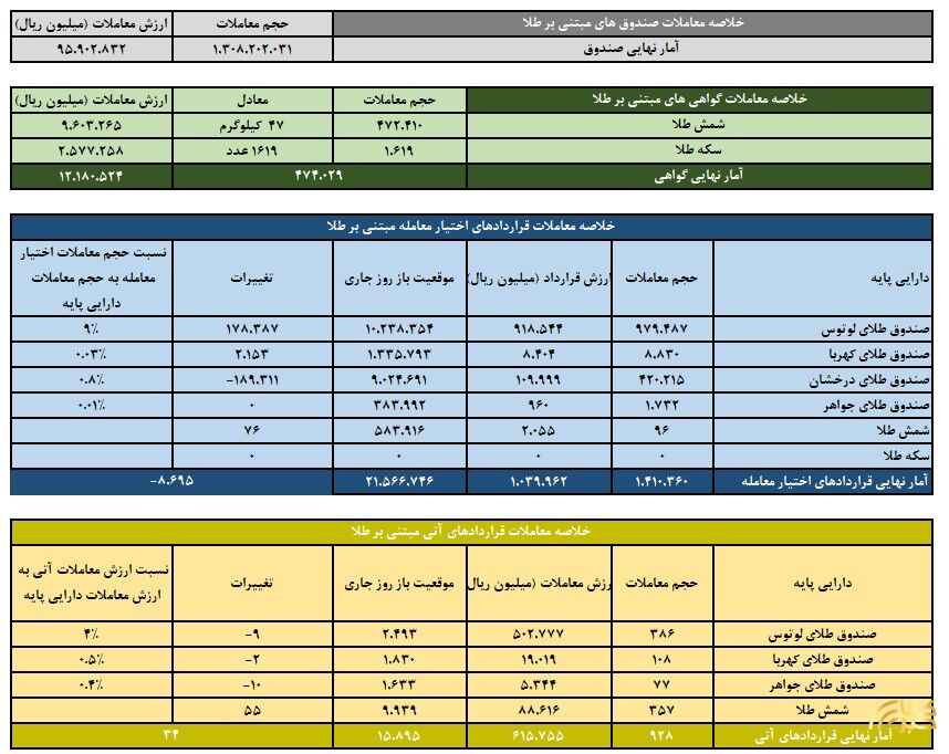 ارزش معاملات صندوق های طلا ۹.۵ همت شد